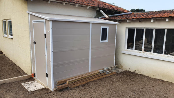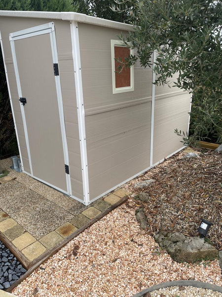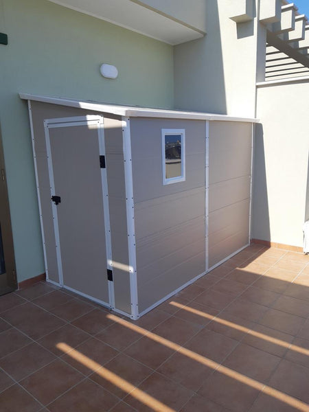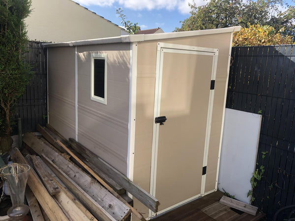 Meinung des Experten zum beigen 3,55 m² großen Anbau-Gartenhaus aus Harz mit Fundament-Kit - JOBU