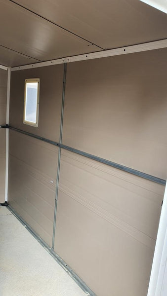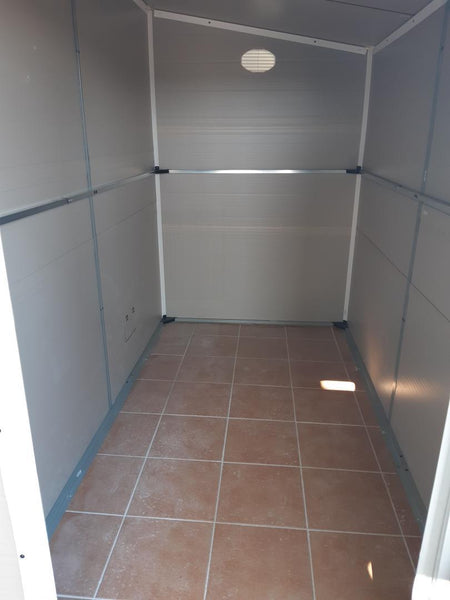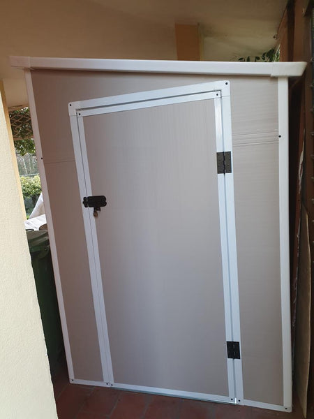 - Gartenhaus aus extrudiertem Polypropylen-Harz mit doppelwandigen 12 mm dicken Wänden, 4 geschlossene Seiten.