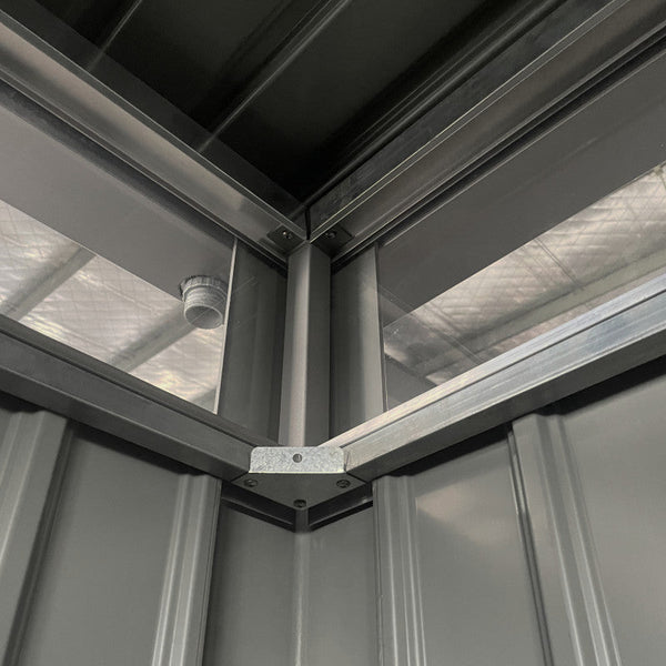 Diese Neuheit vom Hersteller X-Metal macht ihrem Namen alle Ehre. Das Gartenhaus Kosto ist eine beeindruckende Konstruktion aus galvanisiertem, lackiertem Stahl, dessen Dicke 60% über dem Standard der marktüblichen Gartenhäuser liegt. Diese Paneele sind zudem durch eine ebenfalls dickere innere Rahmenstruktur verstärkt.