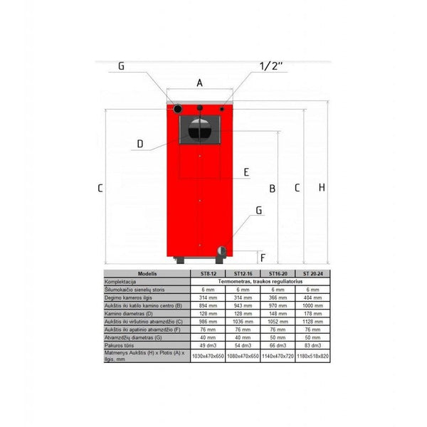 Beheizter Raum: 80-120 m² Komplettes Set: Thermometer, Zugregler Leistung: 8-12 kW Wirkungsgradkoeffizient: 78 % Dicke der Wand des Wärmetauschers: 6 Millimeter Verwendeter Brennstoff: Brennholz, Holzabfälle, Torf, Sägespänebriketts Maximale Länge des Brennholzes: 314 Millimeter Wassermenge im Kessel: 42 dm³ Brennstoffverbrennungsdauer: 4-8 Stunden Außenmaße des Kesselschornsteins: 128 Millimeter Höhe in der Mitte des Kesselschornsteins: 894 Millimeter Mindestzug des Kesselschornsteins: 18 Pascals Betriebsdruck: 0,2 MPa Abmessungen Höhe x Breite x Länge: 1030x470x650 mm Gewicht: 167 kg Entspricht den Normen: CE und EN 303-5