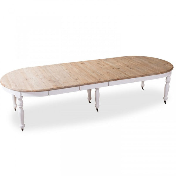 Seine Erweiterungskapazität ermöglicht es, bis zu 12 Personen zu beherbergen, was ihn zu einer perfekten Wahl für Familien- und Freundestreffen macht. Seine runde Form und seine patinierte Oberfläche verleihen ihm eine sanfte Note. Ideal, um eine ländliche Atmosphäre zu schaffen, passt er perfekt zu einem Leinentischläufer und einem Strauß Pfingstrosen und verwandelt jede Mahlzeit in einen zauberhaften Moment, ob in kleiner Runde oder bei besonderen Anlässen.